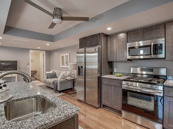 - Kit Dscrp: Flooring - Hardwood, Countertops - Stone/Granite/Solid, Recessed Lighting, Ceiling Fan(s), Stainless Steel Appliances, Kitchen Island, Open Floor Plan, Exterior Access, Deck - Exterior, Slider, Lighting - Pendant