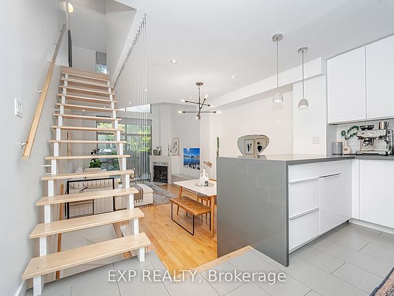 Welcome to 42 Wascana Avenue in the vibrant and historic neighbourhood of Corktown. Discover urban living in this distinguished end-unit townhome offering the ultimate combination of luxury and convenience! Situated in one of Toronto's most sought-after and rapidly developing areas, this residence is within walking distance of the Distillery District, Riverdale, Leslieville, and the St. Lawrence Market. Thoughtfully designed, the entire residence has been meticulously renovated with an emphasis on quality and elegance. Double-height atrium windows and open-tread staircases allow natural light to cascade through the full length of the home, creating an airy and inviting atmosphere. The main level features a contemporary kitchen complete with stainless steel appliances, quartz countertops, and a striking waterfall countertop that seamlessly flows into an open-concept dining and living area. Unwind by the warmth of a wood-burning fireplace beneath soaring 18-foot ceilings, with direct access to a private deck offering a serene escape. The bedrooms feature spacious closets, Juliette balconies, and large windows equipped with custom blackout window treatments for added privacy. The third-floor suite boasts cathedral ceilings and adjoins a den-like area, which may easily be converted into a third bedroom as needed. The fully finished basement offers a generous and versatile space, suitable for a home office, recreation area, or additional bedroom. At the rear of the property, laneway access leads to parking for two small cars and to a private storage shed. Enjoy effortless commuting with quick access to DVP/Gardiner, TTC, Financial district - ideally located near parks, trails, and cafes. If you've been looking for the perfect blend of character, convenience, and modern living this Corktown home delivers! View the virtual tour and book your showing today!