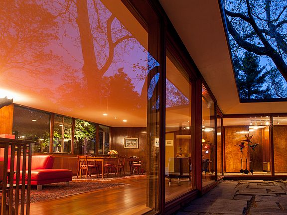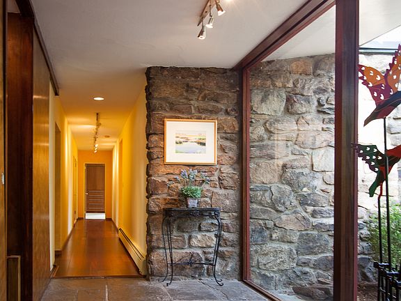 This extraordinary, published mid-century modern home by renowned architect Huson Jackson flows with a sensual elegance; light, open, and quietly spectacular. A progression of glass offers unobstructed views of the tranquil outdoors from every room. These views are enhanced by mature plantings and an original natural rock swimming pool. Superb restored aesthetics throughout are complimented by sensitive upgrades including seamless wood floors. Master bedroom and kitchen are a joy! Separate entry in-law suite or office is genius. Walk to village.
