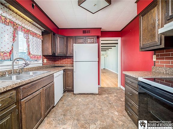 Searching for a Ranch in Jamestown? You've found one! Located on the west side of Jamestown with easy access to Lakewood and downtown Jamestown. A functional, convenient floor plan offers versatility for many types of lifestyles. The sprawling living room is trimmed with decorative beams and fireplace. Hard wood flooring runs throughout the living area and main floor bedrooms. In need of more space? The attic is finished and includes a full bedroom, den and multiple closets. This could also be used as an office space for those needing to work from home! Storage is still available in the crawl space of attic! Enjoy the outdoors on the patio and feel safe knowing the yard is fully fenced in. Some new updates include: a new furnace and newer vinyl windows! This home surely won't last long!