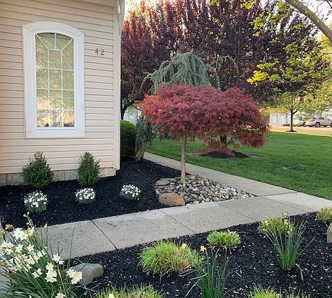 Located in the prestigious Marlton Woods neighborhood in a quiet cul-de-sac is this immaculate end unit Richmond model townhouse built be Beazer Homes. Rich, warm and inviting is the only way to describe this gently used home that shows like a model. The two-story entrance foyer welcomes all with rich Mahogany flooring (installed by Dan Higgins) which runs throughout the entire first floor. The neutral palate with a Tuscan flare allows for a seamless flow into the great room, dining room, kitchen and breakfast rooms -- perfect for entertaining friends, family and colleagues. The kitchen is a chefs delight with stainless steel appliances, Premier Granite Eased edged countertops, Rushmore Cherry cabinets with a chocolate glaze finish that will definitely grab your attention. Off the Breakfast room are sliders to the elevated custom paver patio and well maintained landscaping, allowing you to dine "al fresco". The landscaping was designed to afford privacy with a living barrier of trees. Eye catching night lighting designed into the landscaping will extend your outdoor entertaining into the evenings. Gather around the great room, cozy up to the gas fireplace, and enjoy the charm. Formal dining room off the kitchen with arched walkway with allow your guests to feast in the ambiance. Upstairs the primary bedroom features a tray ceiling, a walk-in closets and en suite with two sinks, a jacuzzi soaking tub and walk-in shower. French door out to a private balcony overlooking the manicured grounds below. All of the bedrooms feature closets created by Closets by Design. Bedrooms 2 and 3 are on this level as well. The laundry room is located upstairs with custom cabinets by Closets by Design. The foyer chandelier can be lowered mechanically for ease of cleaning and changing of the light bulbs when needed. You may not have noticed extra lighting, electrical sockets, wiring for ceiling fans and garage door opener, which were all upgrades when this lovely home was crafted. Your landscaping while being the envy of your neighbors has a sprinkler system to maintain the lush appearance. This lovely oasis is located in the center of it all! You are within walking distance to shopping and dining. Commuting with easy access to the major roadways to Philadelphia, New York City and the relaxing Jersey shore.