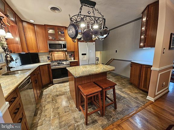 Welcome home! Nestled in a prime location of Meadowood, this meticulously maintained and updated 4 bedroom residence exemplifies comfort and style. From the moment you arrive it will be clear that this is no ordinary home. Updates making this a move-in ready home include Roof, windows, flooring, H.V.A.C., kitchen and more. Attention to detail will be evident in the updated custom gourmet kitchen with plenty of innovative cabinetry, well lit granite counter tops, tile back splash and movable kitchen island enhancing its functionality and flexibility. The living room with hardwood floors and bay window is not just a place for relaxation, it flows seamlessly into the dining room, kitchen and other areas of the home, promoting an airy feel. Just off the entryway is the comfortable family room and powder room along with access to the main level, kitchen,basement and garage. The 4th bedroom, now open up to the family room, provides flexibility of use. The upper level includes the primary bedroom, updated full bathroom and 2 more bedrooms. Mixing indoor and outdoor living was a priority for the owners. Imagine a beautifully designed backyard that seamlessly blends relaxation and nature, creating an oasis of relaxation, calmness and privacy. A gentle babbling brook effortlessly flows into the fish pond surrounded by mature, well-planned landscaping. Whether you’re soaking in the hot tub, entertaining on the large canopied deck, or simply listening to the sounds of the brook and watching the fish in the pond, this outdoor retreat offers a perfect escape from the everyday hustle and bustle. The addition of the over sized 2 car garage with workshop area and plenty of extra storage space adds to the appeal of this wonderful home. Enhancing the overall functionality of the home is the gas "On demand" tank less water heater and the gas "On demand" tankless heated water for the Baseboard heat. Need more space? check out the basement level with more storage space and the included washer and dryer. The sellers pride of ownership will be evident.