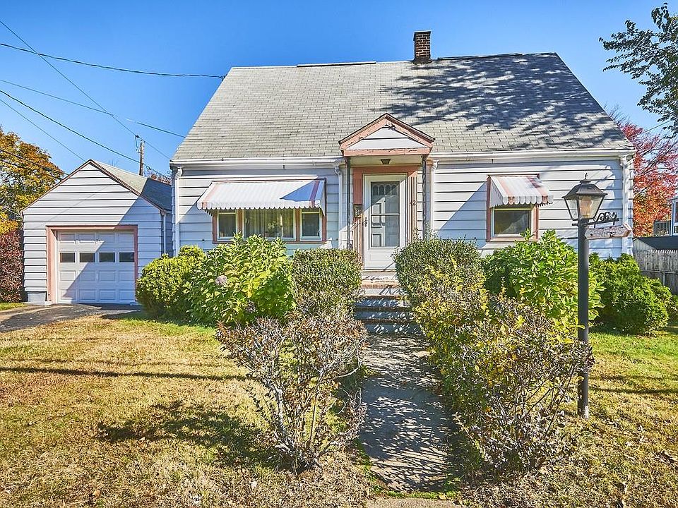 Great opportunity to own this charming and sundrenched 3-4 bedroom Cape that is waiting for you to bring fresh ideas and make it your own. First floor offers a large living room with hardwood floors and picture window, eat-in kitchen, full bath, bedroom, and additional room that can be used as office, den, or fourth bedroom. Second floor features two generous sized bedrooms with hardwood floors and partially finished, walkout basement offers additional space and plenty of room for storage. Level and fenced yard has two driveways, storage shed, and is perfect for outdoor living and summer BBQs. Close to public transportation, Routes 128/95, 93, and 3, and walking distance to Dunkin Donuts make this a great starter home.