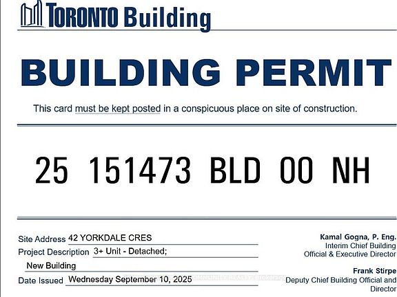 Rare opportunity in prime North York Neighborhood! An immediate development ready 50x120ft lot includes fully approved permit with drawings for a 4 unit fourplex plus optional garden shed suite. Total of 16+3 ensuite bedrooms with spacious layouts, premium finishes, and high rental income potential. Ideal for builders, investors or boutique developers. The seller can provide a complete construction solution, including full project management, on request. Building permit and detailed drawings available upon request.