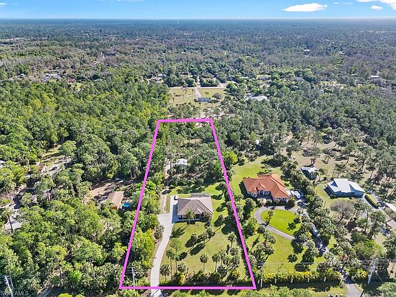Motivated Seller! Welcome to this exquisite Gulfstream built home, embodying tranquility & luxury. Built in 2005, this 3-bed, 2-bath home offers 2155 sq ft living space on a vast 2.5-acre lot, ensuring privacy with an electric gate and cross fencing. Step into your own oasis w/ a sparkling pool & hot tub surrounded by a newly re-screened pool cage. Inside, a remodeled kitchen boasts 42" custom maple cabinets, Taj Mahal Armani Blue granite countertops, new appliances & includes a convenient countertop eat-in bar. Enjoy the airy ambiance created by high ceilings & tile flooring throughout. The owner's suite grants access to the pool area & features a renovated bathroom with a remodeled shower, dual sinks, new countertops, teak wood cabinets & a soaking tub. For hobbyists or car enthusiasts, a brand new detached metal garage workshop awaits, equipped with electricity, three roll-down doors, & ample storage space. Additional perks include: Updated laundry room, new A/C system w/antibacterial UV technology, full home reverse osmosis water system & new water heater. Don't miss the RV hookup and parking spot. Enjoy association free Florida life in Golden Gate Estates!