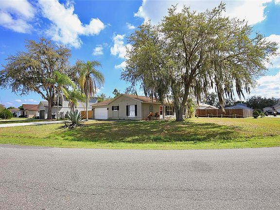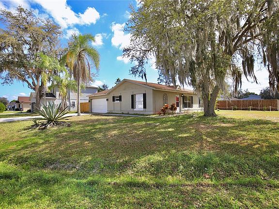 CORNER LOT with beautiful oak trees. This 3/2 has 2 bonus rooms in the garage. (Could be 4th and 5th bedrooms) Privacy Fenced Yard. Large Family room with vaulted ceilings. Kitchen has eat in space and sliders to the covered screened patio. Split bedrooms. Tile throughout the home. No CARPET. Garage was converted to 2 rooms and storage space. INSIDE Large laundry room. Close to shopping and restaurants. Monthly HOA of $82/month includes internet and cable. Call today for your private showing!