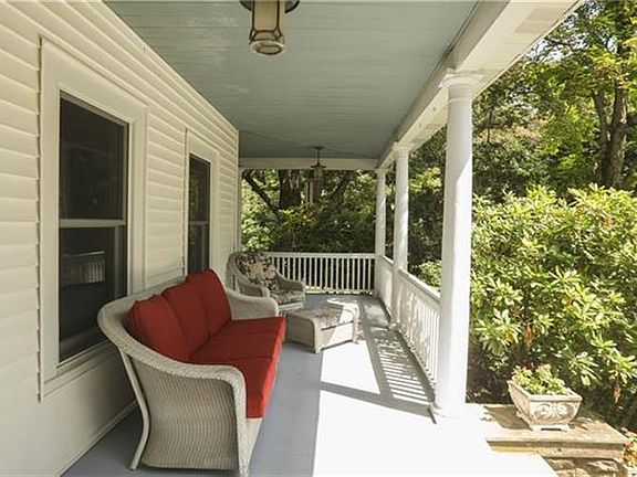 Beautifully situated on 2.6 park-like acres with mature trees, this unique 1920's home is the perfect retreat for a family or weekenders. Private yet close to all services. Stone pillars, a tree-lined circular drive lead to a bluestone walkway. Enjoy panoramic views of the grounds and Black Rock Mountains from the wrap-around porch. Main floor features spacious LR and DR w fireplace. Renovated chef's kitchen w top of the line appliances, pantry, dining area and 2 walls of windows overlooking an in-ground pool, patio and gazebo. Half bath and LDRY room complete first fl. 2nd fl has 3 BRs and an office each with its own private balcony. Renovated full bath w Jacuzzi tub. Large bonus finished storage space w full bath. Country life, modern flair. Many original details: stained glass window, built in shelves, pocket doors and HDWD floors along with water filtration system, 2 zone heat and central AC.Cornwall schools. 1 Hr to GW Bridge. Hiking, restaurants and transportation to NYC minutes away.