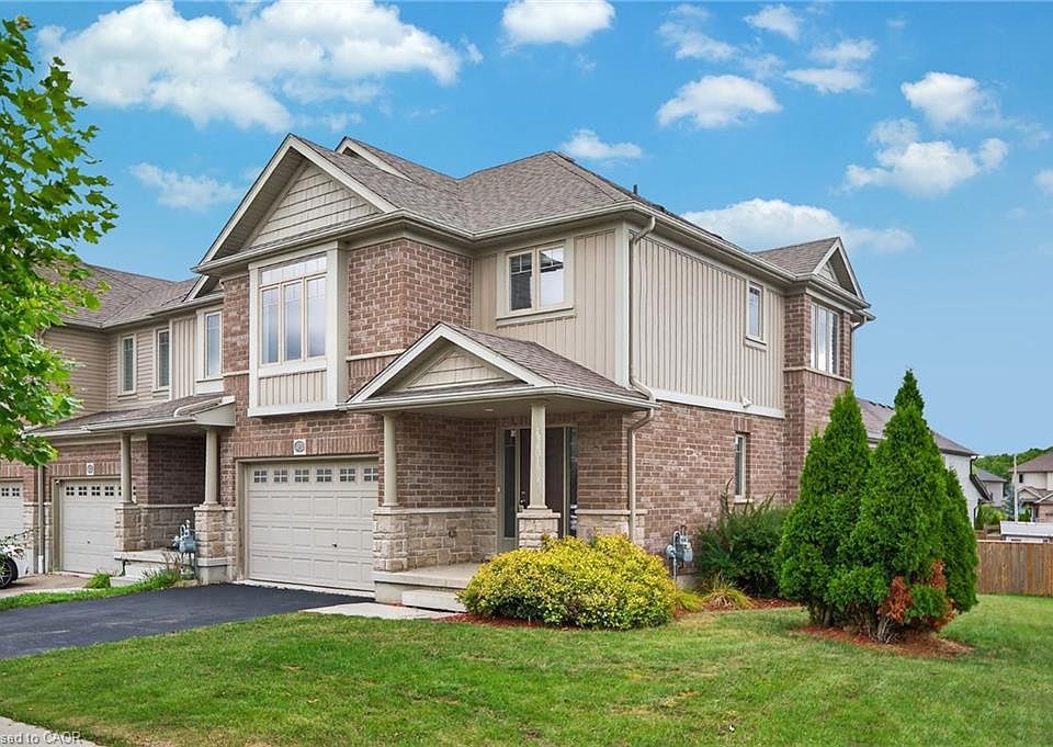 Welcome to 420 Avens Street, Waterloo – A Home That Truly Has It All! This stunning freehold, end-unit townhome nestled in the prestigious Vista Hills community. Offering over 2,300 sq. ft. of finished living space, this home is designed to impress families, professionals & investors alike. From the moment you arrive, the end-unit setting gives you added privacy, extra windows for natural light & a larger yard space – features that make this home stand out. Step inside to soaring vaulted ceilings and a bright, open-concept main floor where engineered hardwood flooring (2025) flows seamlessly through the living and dining areas. The modern kitchen offers sleek SS Appliances, abundant storage & contemporary finishes. Freshly painted throughout, the home feels crisp & move-in ready. A convenient 2-piece powder room completes this level. Upstairs, retreat to the spacious primary suite, complete with a walk-in closet & a private 4-piece ensuite. 2 additional bedrooms & a beautiful 4pc main make this level ideal for growing families. The fully finished walk-out basement is a true gem – a bright and open recreation room with an additional 3-piece bath, offering endless possibilities for a guest suite, entertainment hub, or playroom. Outside, fall in love with the expansive corner lot featuring a large 12’ x 24’ deck – perfect for summer barbecues, family gatherings, or simply unwinding while the kids play in the backyard. And with Avens Park just a short walk away, you’ll always have green space at your doorstep. Notable updates include a new air conditioner (2024), new flooring (2025) & fresh paint. Beyond the home, the location is second to none. Vista Hills is known for its top-rated schools, family-friendly atmosphere & proximity to everything you need, shopping & entertainment at The Boardwalk, everyday essentials at Costco & close to the University of Waterloo, Wilfrid Laurier University & scenic trails for outdoor adventures. Book your showing today!