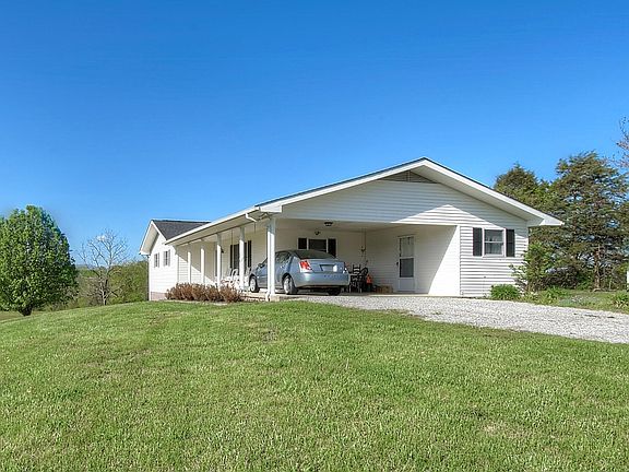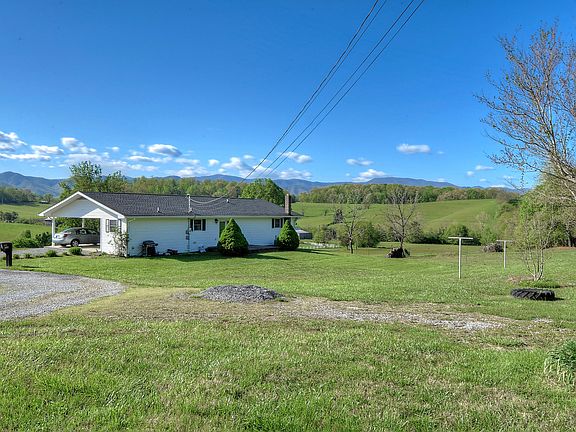 Nestled on 10+ acres of cleared pasture with Snapp Branch Creek running across the south west corner, this 2Br 2Ba brick & vinyl ranch offers fantastic mountain views to enjoy from the covered front porch/carport. The master bedroom has a walk in closet and a master bath. The dish washer, stove and refrigerator stay with the eat in kitchen dining area. The hot water heater was replaced in 2022. There is a full unfinished walk out basement with a one car drive under garage/garage door and there is also an attached one car carport. There is a laundry room leading out to a back porch patio. The house was constructed as handicap accessible. There is a full house security system with the key pad in the master bedroom closet. The outbuilding conveys with the property and there is also a polled/stalled barn on the southwest corner of the property. There is a spring adjacent to the barn with a collapsed spring house partially covering the spring. Property sold ''AS IS''.