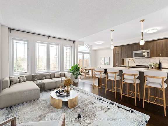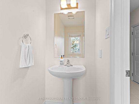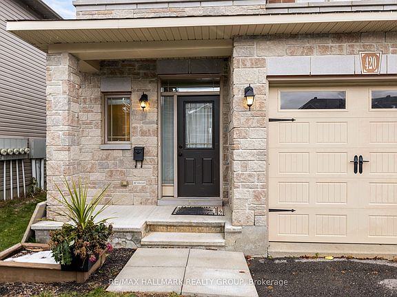 OPEN HOUSE - November 22nd & 23rd from 1:00 P.M. to 3:00 P.M. - Welcome to this beautifully upgraded Marseilles II end-unit townhome offering 1,740 sq ft above grade, an extended lot, and no rear neighbours. This premium Valecraft Homes layout stands out immediately with its sunken foyer, rich hardwood floors, and the dramatic curved staircase that opens onto a spacious upper landing. The main floor offers both a formal dining room and a bright separate breakfast area-a rare feature in modern townhomes. The kitchen impresses with quartz countertops that pair perfectly with a sleek elongated hexagon backsplash, creating a modern, cohesive designer look. Abundant cabinetry, and a new stainless-steel fridge (Sept 2025) complete this stunning space. Upstairs, you'll find three large bedrooms, including two oversized secondary rooms. The primary suite feels like a retreat with a huge walk-in closet and a luxurious 4-piece ensuite featuring a deep corner soaker tub and separate shower. Convenient top-floor laundry and a 3-piece main bath complete this level, along with a 2-piece bath on the main floor. The expansive finished basement spans nearly the full width of the home and offers a large recreation space with a cozy gas fireplace and a rough-in for a future bathroom, giving you endless potential. Outside, the long driveway offers ample parking, and the oversized backyard-backing onto open space with no rear neighbours-provides room to relax, play, and entertain. With abundant storage, premium finishes, and a thoughtful, spacious layout, this move-in-ready home delivers style, comfort, and rare privacy in one of Kanata's most desirable communities. Book your showing today!