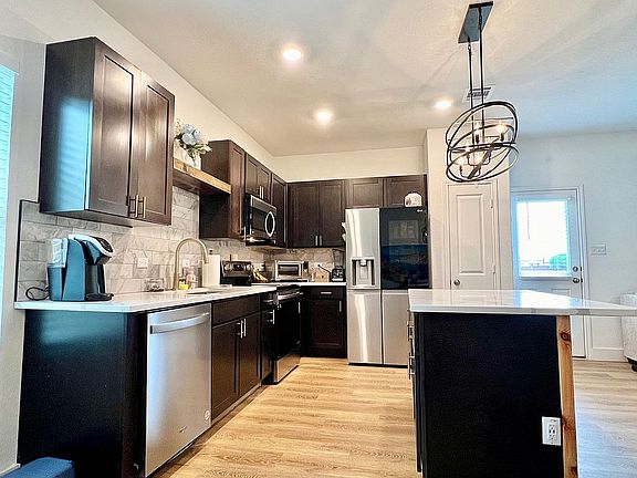 Home has many upgrades included double vanity’s in the main bathroom, huge walk in closet, attached covered patio, climate controlled garage with utility sink for workshop or additional living area.