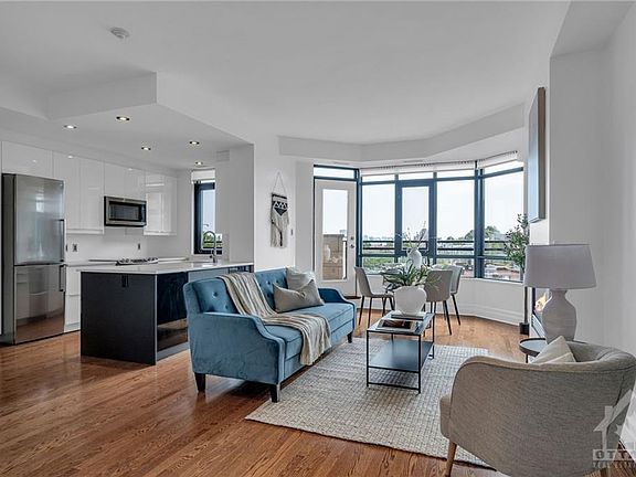 This exquisite 2 bed condo offers a perfect blend of style, convenience, and location. Boasting 945sqft of thoughtfully designed living space, this East-facing unit bathes in an abundance of natural light, creating a warm and inviting ambiance. Step inside and be greeted by the open-concept layout that seamlessly connects the living, dining, and kitchen areas. The modern kitchen features sleek stainless steel appliances and ample cabinetry -perfect for culinary enthusiasts and entertainers alike. As you make your way through the living space, you'll be drawn to the stunning 184sqft terrace with a natural gas line for barbecuing and views of Ottawa River and downtown skyline. Both bedrooms are generously proportioned. The master bedroom boasts a serene retreat (with California Closet Shelving),while the second bedroom offers versatility for guests,a home office or a creative space-the choice is yours. Parking space equipped with an electric car charging station. Storage locker included. 2023-10-01