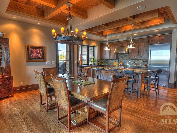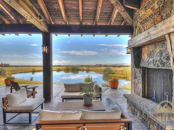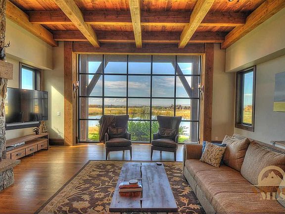 Take in mesmerizing pristine mountain views & waterfowl on the ponds from the walls of glass in this Black Bull home. Open floor plan with coffered ceilings artfully combines rustic elements of wood, stone, & glass. Great room highlighted by fireplace with dry-stack lichen accented stone. Kitchen features honed granite counters & large island for friends and family to gather. Impressive sliding glass doors in dining room provide access to extensive patio space with wood burning fireplace.