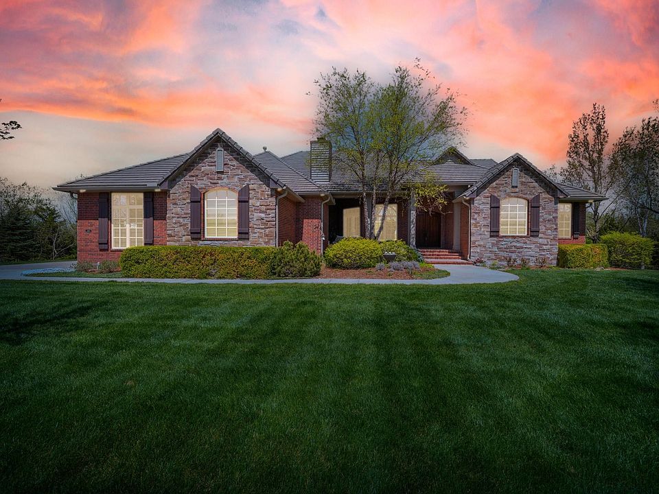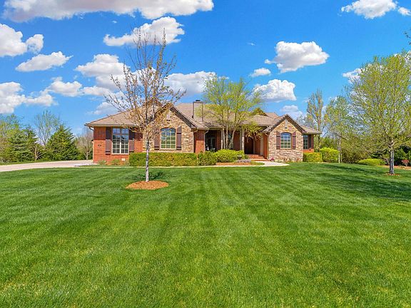 Exquisite 6,577 Sq. Ft. Home on 1.1 Acres in the Gated Flint Hills National Addition - Andover, KS Welcome to this beautifully maintained residence, where thoughtful updates and timeless design meet in one of Andover s most prestigious communities. Nestled on a meticulously landscaped lot with mature trees and a wrought-iron fenced backyard, this stunning home offers exceptional indoor and outdoor living on 1.1 acres. The stately stone and brick exterior, tile roof, and long driveway leading to a three-car garage create a commanding first impression. A covered front porch with a wood-burning fireplace welcomes you ideal for entertaining or enjoying a peaceful evening outdoors. Step inside through custom double wood doors and be greeted by neutral paint tones, crown molding, and comforting hardwood floors. Natural light pours in through floor-to-ceiling windows in the main living room, where high ceilings and custom trim work offer an elegant atmosphere. Plantation shutters adorn several windows throughout the home for a classic touch. The home s layout includes a formal dining room, reading or piano nook, and seamless flow into the informal dining area and gourmet kitchen. The kitchen has been tastefully updated with new quartz countertops and features top-of-the-line appliances including a Thermador gas range, built-in Sub-Zero refrigerator, built-in microwave, and a Bosch wall oven making for a total of two ovens. You ll also find a large island with a prep sink, a walk-in pantry, and a spacious breakfast bar, perfect for entertaining or a lazy Sunday brunch. The adjoining hearth room offers comfort and charm with built-in shelving, a gas fireplace, and a coffered ceiling. A separate laundry room and powder bath complete the main living spaces for daily convenience. The private primary suite is a serene retreat with a tray ceiling, expansive walk-in closet, and spa-style en suite featuring a jetted tub, walk-in tiled shower, and dual vanities with custom cabinetry. Two additional main-floor bedrooms share a Jack and Jill bath with stylish finishes. The lower level continues to impress with a large walk-out basement that includes a generous family room, stone fireplace, built-in handsome stack stone wet bar with glass shelving, and a dedicated theater space or game room with integrated speakers. Two spacious bedrooms each feature private en suite full bathrooms, offering comfort and privacy for guests or residents. There s also a hobby/office room with built-in desk and shelving, a powder bath, and a massive storage room that is plumbed for a second laundry area. Step outside to experience the ultimate backyard oasis. The home boasts a covered deck, an additional patio, and a charming pergola all overlooking a spacious yard and in-ground pool with automatic cover and brand new pump. Surrounded by trees and mature landscaping, the backyard offers true privacy and the occasional deer and wildlife sightings for a tranquil, natural setting. Throughout the home, updates have been thoughtfully completed both cosmetically and mechanically. The result is a move-in-ready property with luxurious finishes, functional living spaces, and timeless curb appeal.