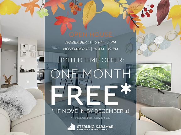 - Special offer! Limited Time Offer | Enjoy One Month FREE on a 13-Month Lease If Move-In by December 1!* - Limited Time Offer | Enjoy One Month FREE on a 13-Month Lease If Move-In by December 1!*