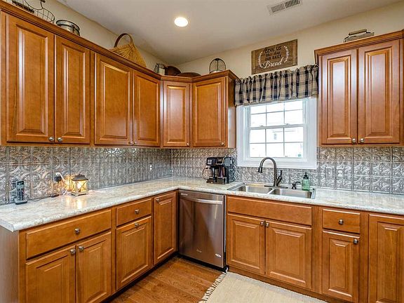 Bountiful charm & beauty throughout this corner lot ranch with an open floor plan! Kitchen with hardwood, stainless steel appliances, tin backsplash & island with breakfast bar, open to a living area with hardwood, gas fireplace, mantel & back porch access! Formal dining room off kitchen & living! Main level master suite has bath with dual vanities! Two additional bedrooms and a full hall bath! Exterior offers covered front porch and wide covered back porch, which overlooks the large, fenced back yard with a storage shed! Attached double garage! Quiet neighborhood on the outskirts of Broadway is convenient to all town parks, schools & shops; as well as the major roadways that surround the area!