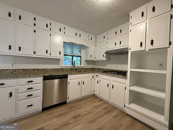 PRICE IMPROVEMENT! Beautifully updated 3 bed / 2 bath brick ranch on a spacious 0.45-acre cul-de-sac lot in a quiet, no-HOA neighborhood in West Cobb. This 2,387 sq ft home features a new roof, windows, interior/exterior paint, updated bathrooms, kitchen countertops, gas cooktop, dishwasher, and new flooring throughout. Enjoy multiple living spaces including a separate sitting room, cozy family room with a brick gas fireplace, eat-in kitchen, formal dining room, and a bright sunroom overlooking the fenced backyard. The finished walk-out basement offers great bonus space, and the two-car side-entry garage adds convenience. LOCATED IN THE SOUGHT-AFTER HARRISON HIGH SCHOOL DISTRICT, with easy access to Dallas Hwy, Barrett Pkwy, The Avenue West Cobb, Kennesaw Mountain, and I-75. Move-in ready and full of charm-don't miss this one! Schedule a showing today!