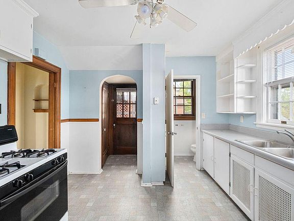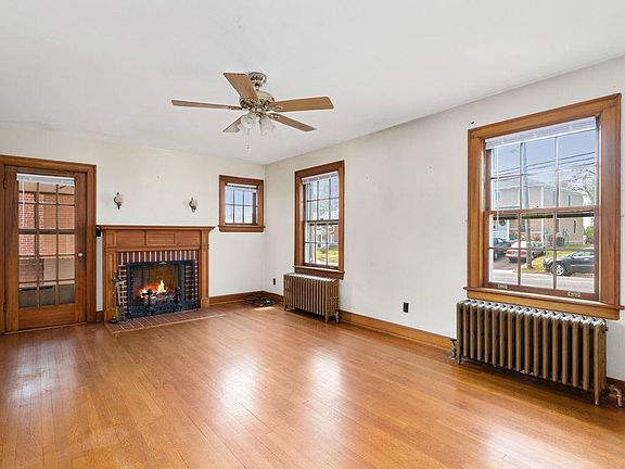 Move in to this solid and structurally sound brick home and do projects as necessary. Welcoming entrance with foyer and sunlit wooden staircase. Vintage design with arched doorways, radiators, French door with skeleton key and glass door knobs. Original windows create bursts of sunlight throughout the entire first and second level living spaces. Hardwood floors throughout. Walk-in hall closet lined with cedar. Wide and spacious upstairs hallway. Brick fireplace with wooden mantel. Large bedrooms with closets. Large wrap-around deck (8'x43') with access to a level fenced backyard, screened porch (7'4"x11'6") and paved driveway. Detached garage (19'x11'). Brick exterior.
