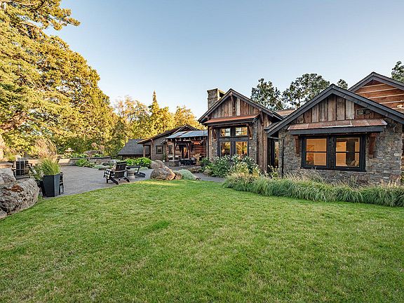 Private, stunning, custom built, mountain chic home on 10.5 acres in Hood River's premier west side. Outdoor living showcases multiple entertaining spaces with endless custom patios, gas fire pit, wood burning fireplace, and detached gym/studio. The 5784 sq/ft interior features, 5BD, 5.5BA, concrete and white oak floors with hydronic heat. Luxury kitchen and spacious center island with Luce de Luna dolomite counter. Primary suite on the main level. Attached guest suite. Inquire for more details.