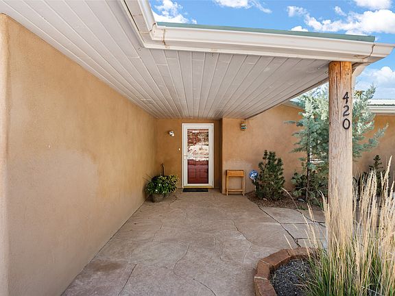 420 Greg Avenue is a fantastic opportunity in Upper Casa Solana! With a pitched metal roof, spacious fenced yard and 2-car garage, it’s perfect for families or anyone looking for some outdoor space, and comfortable living in close proximity to shopping and downtown amenities. The single-level layout, porcelain tile floors, and wood-burning fireplace add a cozy touch, and the covered south-facing portal offers mountain views, and a beautifully landscaped front yard. Mature Ponderosa & Pinon trees fill the fully enclosed back yard. The newer Navien high-efficiency boiler means comfort and energy savings year-round. Established landscaping and mature trees really enhance the property’s charm and character, making it a lovely retreat close to downtown Santa Fe. Located on the northern edge of town, this location is great for anyone commuting North to Los Alamos Labs. What a great find!