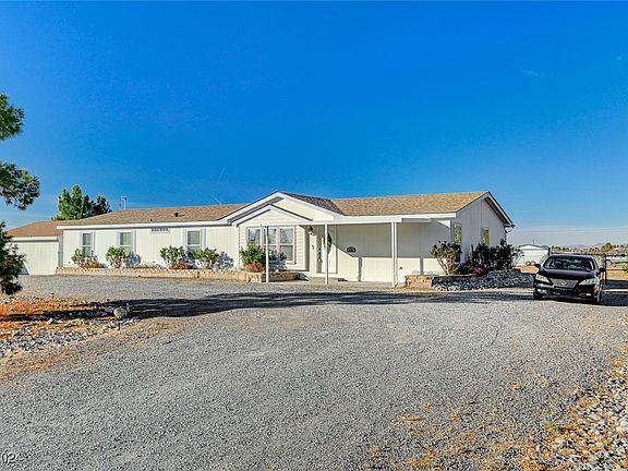 This beautifully maintained, one-story 2280sqft 4 bedroom 3 bathroom manufactured home with secondary bedrooms having attached "Jack and Jill" restrooms. This home offers a peaceful retreat on over an acre of fully fenced property in the heart of Pahrump, Nevada. Built in 2005 and converted to real property and ready for financing, with a newer roof and HVAC system installed, this spacious home boasts numerous recent upgrades, blending modern comforts with the tranquility of rural living. Enjoy the benefits of being on a private well and septic! This home provides a wonderful opportunity to experience the best of Pahrump living—close to nature, yet only a short drive from the amenities of town. Don’t miss your chance to own this charming property with room to grow!
