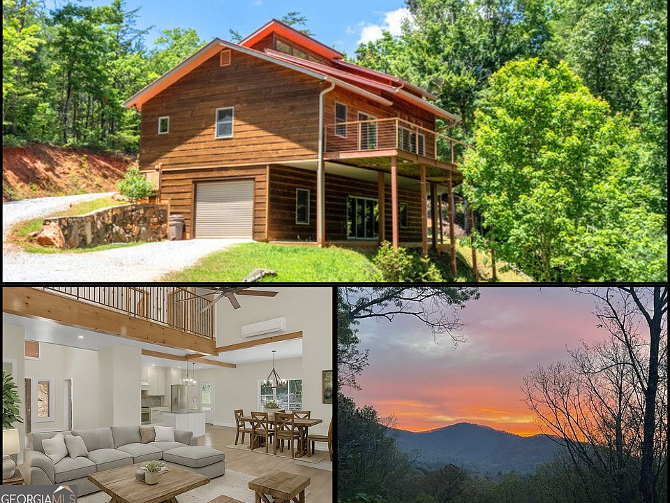 Mountain Top Retreat! Top of the ridge with a gorgeous view! End of road privacy awaits with this gorgeous 3 bedroom, 3.5 bath home situated on 2.25 acres. Entering the home, you will be greeted by a beautiful staircase and large windows taking in the view! On the main level is an absolutely gorgeous custom kitchen with granite countertops and solid wood cabinets, which adjoins the dining and living room. Just off the kitchen is a half bath and a perfect laundry room featuring a utility sink, countertops, and cabinets! Concluding the main level is the master suite with glass doors to access the deck, his and hers closets, double vanities, and a tiled walk-in shower. Upstairs is two bedrooms with a full bathroom, and downstairs is a one car attached garage, a full bathroom, and a large unfinished space for you to do whatever you would like with it! This amazing custom-built home is a must see! Located convenient to lakes, hiking, wineries, and one of the best Main Streets that the North Georgia Mountains has to offer!