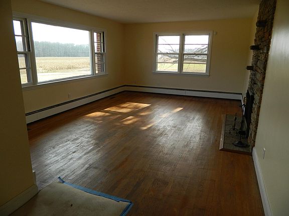 3 bedroom,living room with fireplace,dining room full kitchen with appliances,large laundry room,attached 1 car garage ,full basement. Heat pump with central air conditioning,well water country sewer,Out in the country but just a few miles from town