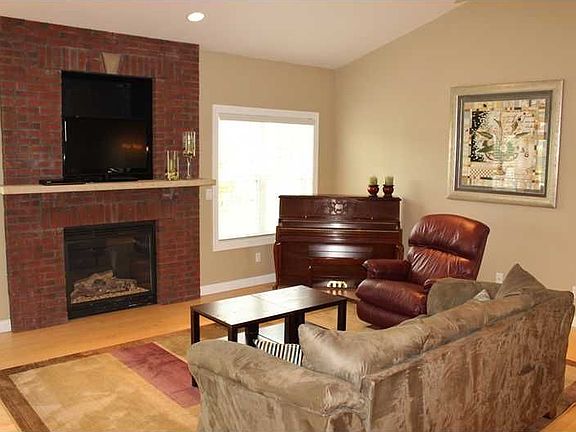 Model perfect 4 bedroom, 3.5 bath ranch style home is light and bright with vaulted ceilings, beautiful maple hardwood flooring and open floor plan. Company sized vaulted great room with brick surround fireplace & above T.V hookup. It opens to the spacious kitchen that comes complete with stainless steel appliances, staggered cherry cabinets with under mount lighting, granite counter tops, walk-in pantry & dining area with slider to deck & terrific custom built 2-tiered patio with fire pit. Formal dining room with French doors, main floor laundry with tile flooring. Master suite features trey ceiling, private bath with double sink vanity, tiled flooring & corner whirlpool tub. Lower level family/rec room is perfect for teens or guests with third & fourth bedrooms, bathroom & dance/exercise/den room with laminate flooring. All newer carpeting (2012), sound & irrigation systems, central vac, upgraded lighting & heated 3 car.