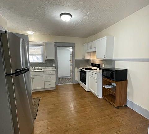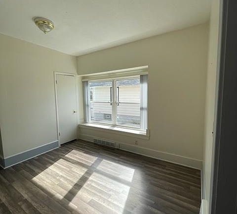 Great value! Freshly painted 1 bedroom apartment, 1 bath apartment with separate dining room and eat in kitchen. Brand new kitchen cabinets with custom backsplash, new laminate flooring in living/dining and bedroom areas. 1/2 freshly painted basement with plenty of storage space. Custom vertical blinds in dining room and living room. 1 off-street parking space behind property. ALL utilities (electric, gas, water, sewer & garbage) included in rent. $ 800.00 for 1 person only. No pets. All utilities included in monthly rent. Owner pays for water, garbage, electric and gas. 6 month lease and then a month to month lease for 1 person only. Negotiable for 2 persons.