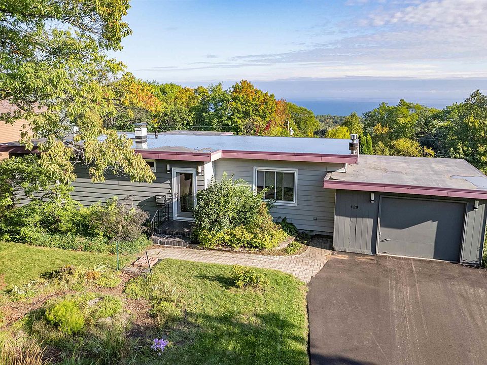 This gem in Hunter's Park offers a gorgeous tree top & Lake Superior View! As soon as the sun comes out, we'll grab a picture. Better yet, go check out the house! Expansive windows on the back side of the home fill it with natural light, & let you take in that view from the entire main living area and the primary bedroom. Not too big & not too small, there is no wasted space here, the bright lower level offers a walk out X 3! Patio doors in both lower level bedrooms flow out to the charming back yard & patio, while the upper level deck opens from the main floor...wonderful flow & function! Beds & bath on both levels, a fireplace for ambience & added warmth, central air, custom solid wood cabinetry, a welcoming entry. Bright and cheerful, nestled in a beautiful lot in desirable Hunter's Park, this one will go quick...don't miss it!