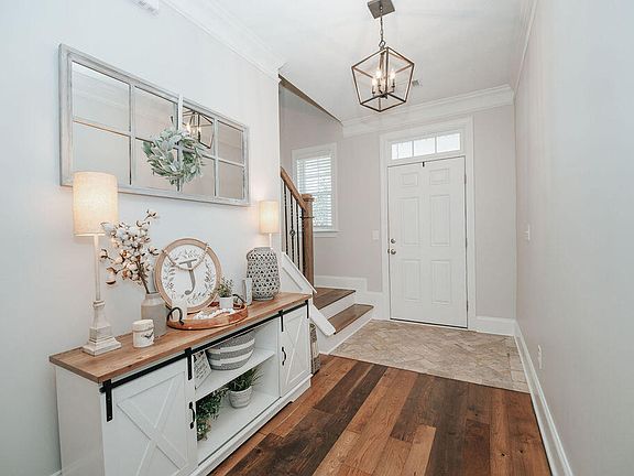 Welcome home to this beautiful 4-bedroom, 2.5-bathroom home in the highly sought-after Crawford Creek community. Enjoy an inviting open-concept layout that seamlessly connects the living, dining, and kitchen areas. The kitchen features stunning white cabinetry, stainless steel appliances, and charming Chicago brick flooring that continues into the dining space. Hardwood flooring extends throughout the entire home—no carpet anywhere! The main level also offers a spacious foyer and a convenient half bath for guests. Upstairs, the large owner's suite includes a gorgeous ensuite with a garden tub, tiled walk-in shower, and an oversized closet. Three additional bedrooms, a guest bath with a tiled shower, and an upstairs laundry room with a Chicago brick accent wall complete the second level. Step outside to a spacious backyard with a covered patio, perfect for relaxing or entertaining. This home is a must-see!