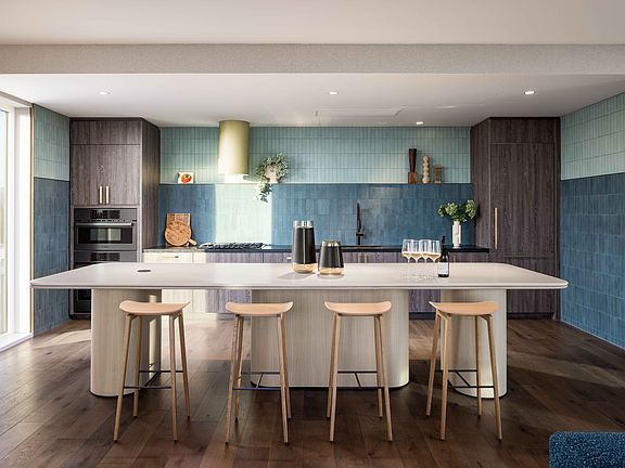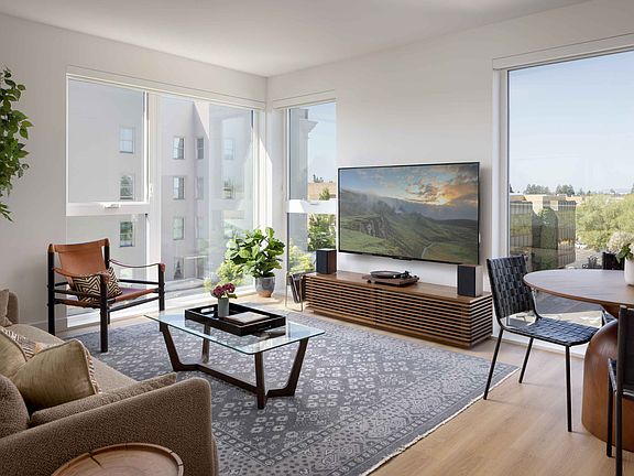 - Exterior features: Bicycle storage, Honed white quartz counters, Keyless entry, Package Receiving, Sundeck, TV Lounge, Top-of-the-line appliances, White oak cabinetry, Wide-plank flooring throughout