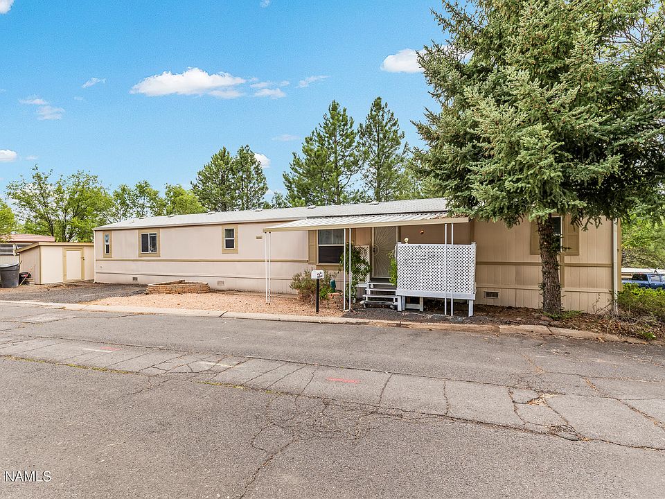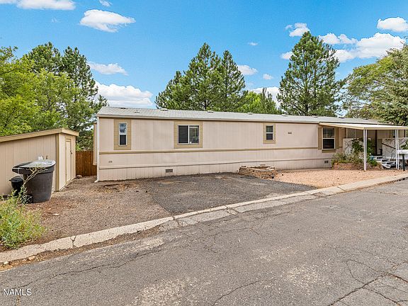 Affordable Flagstaff Living! 3-Bedroom, 2-Bathroom with A/C, Covered Porch and fenced yard-WALK TO DOWNTOWN! This 1,280 sq foot well maintained mobile home is located in a Prime Flagstaff Location. The open floor plan connects the Kitchen and Living Room, creating a welcoming space for every day living and entertaining. Recent upgrades include a new dishwasher, water heater, freshly painted exterior and has air conditioning for year round comfort.If your looking for an affordable comfortable home in a convenient location, this home is a must see! Enjoy the covered front porch perfect for relaxing outdoors and the fenced back yard for privacy. All interested buyers must 1st fill out Application with park management before submitting offer. Lot rent is 750.00/month.