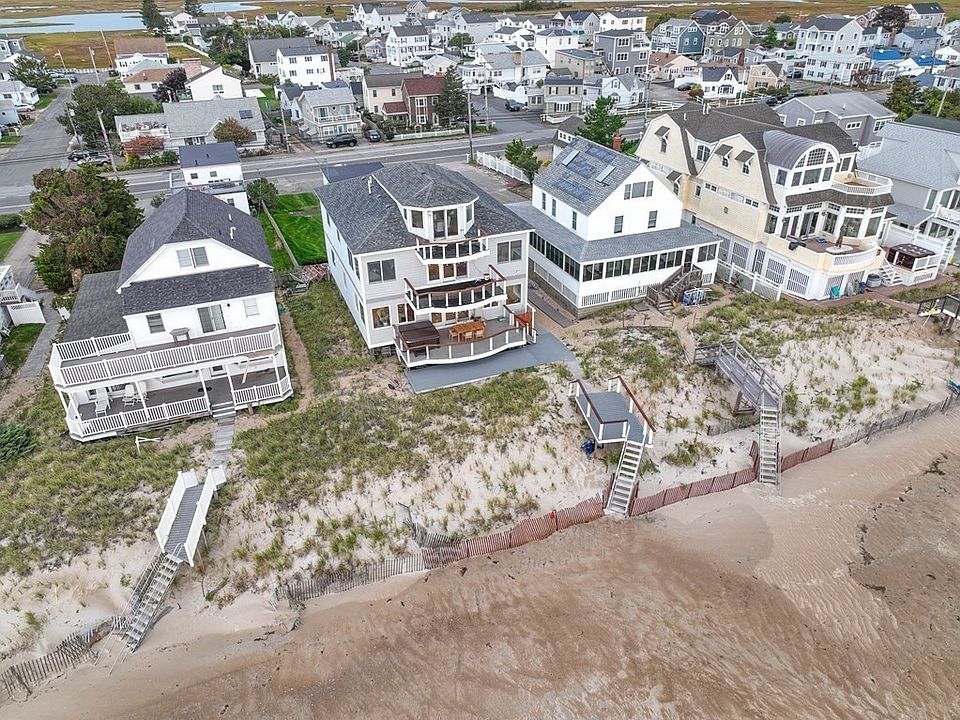 OPEN HOUSE CANCELED. Dreams Do Come True! Enjoy the steady roar of the surf and catch the ocean breezes, long & lovely barefoot walks on the beach, lazy summer picnics, beach house parties, or stir up cocktails on your deck. There are breathtaking ocean views from the Isle of Shoals to Plum Island and Ipswich from all three floors of this beach house. This extraordinary home, custom built by a builder for his family, has 4000 SFLA, 5 bedrooms, 3.5 baths, 3 levels of decks, a 2-car garage, hardwood floors, outdoor shower & hot tub, a first-floor guest bedroom & bath, private boardwalk and bridge deck. The side-to-side enormous primary suite with a private balcony has views to infinity. However, the Ocean is the real star of the show, especially when showing off the morning sunrises. Be part of a growing seaside community with local seafood restaurants, reggae bands, arcades and music at Blue Ocean Music Hall. Bring your surfboards, kayaks, fishing rods & flip flops and move right in!