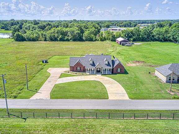 GORGEOUS HOME ON .86 ACRE LOT WITH POOL AND POOL HOUSE IN PRYOR—ONLY 1/2 MILE FROM HWY 69 AND HWY 20! This beautiful home built in 2006, blends style, function, and comfort across a thoughtfully designed floor plan. It offers 3 spacious bedrooms, 2 full bathrooms, and an upstairs game or media room perfect for movie nights, hobbies, or a home office. The kitchen is a standout with stainless steel appliances, abundant cabinet storage, a center island for prep or casual dining, and an open layout that flows into the main living area for easy entertaining. Generously sized closets, a floored attic with interior access, and smart storage throughout the home keep everything organized and within reach.