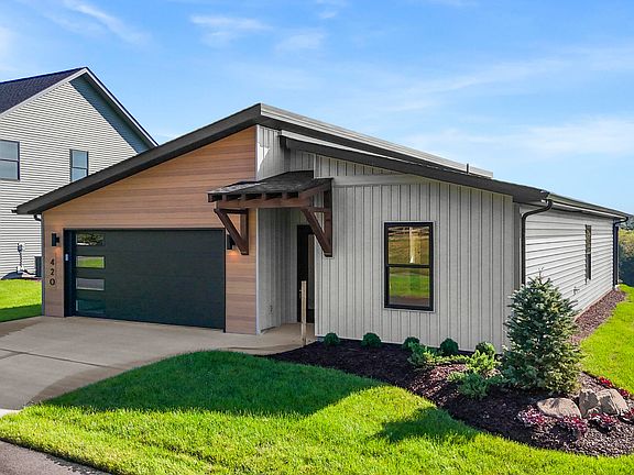 From the moment you arrive, the contemporary design stands out with board and batten siding, stone accents, steel panel detailing, and a beautiful timber package framing the front entry. Built with quality in mind, this home features Pella windows and doors, offering exceptional energy efficiency and timeless style.