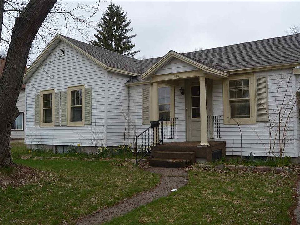 Welcome home to this 2 bed, 2 bath home featuring hardwood floors and new carpet(2018), spacious kitchen with dishwasher, large pantry, a few built ins and a partially finished basement with laundry. New roof (2018). Level lot with large garage which does need paint and carport. 3 season porch. Age is estimated. Home is being sold as-is.