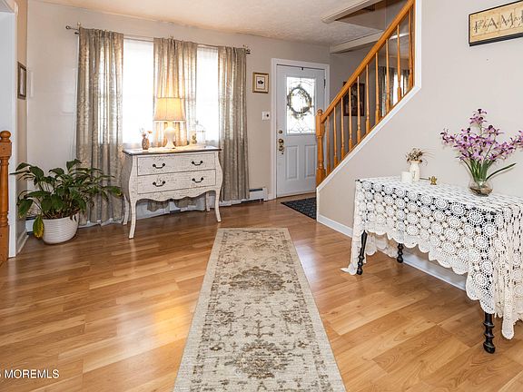 Welcome home to this charming & spacious 4-bedroom residence in the coastal town of Union Beach! Thoughtfully designed for both comfort & entertaining, the home features a modern eat-in kitchen with a gas stove & sliding doors leading to the back deck—perfect for morning coffee or outdoor dining. The formal dining room offers plenty of space for family gatherings, seamlessly connecting to the large open living room with a cozy gas fireplace. A tucked-away home office or library provides a quiet retreat just off the front entry. The first-floor primary bedroom boasts a huge walk-in closet, while three additional well-sized bedrooms with ample closets are situated upstairs. A full bathroom on the main level adds convenience. Enjoy the fully fenced backyard, featuring a 3-season room & deck.