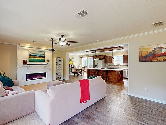 This Is Not a Mobile Home... It's a Customized Modular Dream Home Designed for Family & Fun! Step into your own slice of paradise with this one-of-a-kind custom modular retreat, where luxury meets everyday comfort. Built onsite with premium materials and exceptional craftsmanship, this home offers the quality, stability, and lasting value of a traditional site-built residence—built to stand the test of time. Inside, the gourmet kitchen features high-end appliances, abundant counter space, and an open layout perfect for both cooking and entertaining. The spacious living room, anchored by a stunning fireplace wall, flows seamlessly into the dining area, which overlooks your private backyard oasis. The luxurious master suite offers a spa-like retreat, complete with a soaking tub, separate walk-in shower, and his-and-hers closets. Two additional bedrooms share a large guest bathroom, ideal for family or guests. A mudroom/laundry room provides extra functionality and leads to a covered deck—the perfect spot to watch breathtaking sunsets and moonrises. Step outside and enjoy: A sparkling pool with sun deck A double carport that doubles as an entertainment space A storm shelter for added peace of mind A 12-foot privacy fence for total seclusion