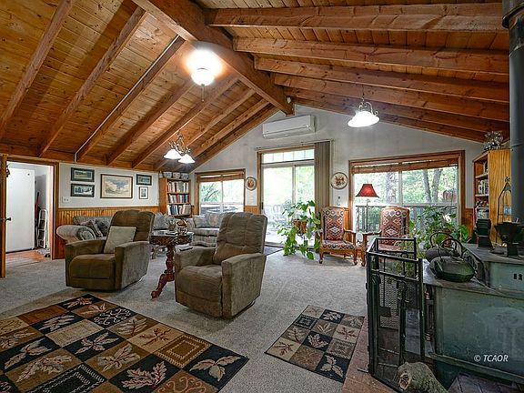 Remodeled Cabin w/ Creekside Setting. The 1920's Log cabin portion retains the rustic charm; a 26 x 14 main bedroom w/ a river rock fireplace & classic windows. This portion also includes 2 add'l bedrooms, a bathroom, a dining knook w/ classic wrap around windows, & an upgraded country kitchen with many modern amenities. The rear portion of the home includes a (vaulted ceiling) 20 x 24 living room, opening to an inviting 33 x 11 deck graced w/ a waterfall cascade view & creekside serenade. To complete the rear portion; a spacious & laundry room w/ cabinetry, & 2nd bathroom w/ exterior access to the deck. The 2 car carport w/ two add'l storage rooms is covered w/ a metal roof (less than 3 years old). One of the 2 carport stalls includes a EV 'charging station'. Add'l out buidlings include 2 storage buildings, & a pump house ( new pressure tank for well). Recent upgrades include (but not limited to): new kitchen/laundry appliances, upgraded wiring & plumbing, siding repaired & painted, decking replaced, cabinets & interior doors replaced, an energy efficient electric mini-split heat & air. Pristine grounds w/ large fenced vegetable garden, wisteria graced gazebo, meadow, & a clear path to Price Creek.