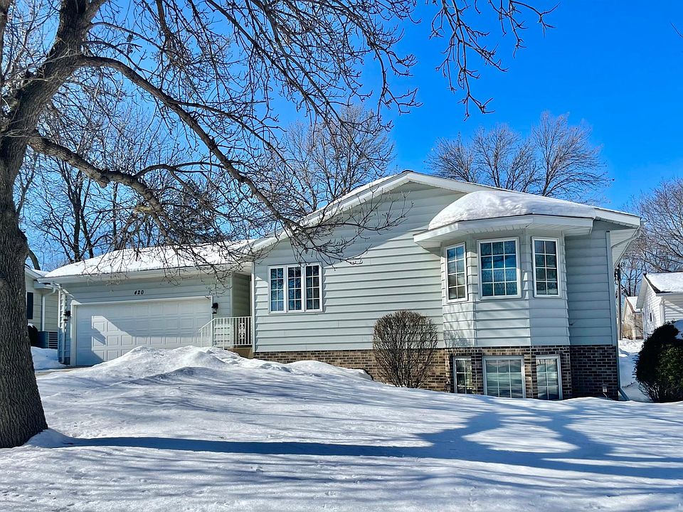 Located close to the school, park, and ball fields, this one owner, clean, well-maintained home features an open main floor layout with a large living and dining room, an eat-in kitchen with a breakfast nook, center island, desk area, and ample storage, two main level bedrooms with walk-in closets, and a finished lower level with family/game rooms, two additional bedrooms, a full bath, and storage room. The main level laundry room is conveniently located right off of the front entry/garage and has a door leading out to the huge backyard. The attached double garage has great storage space. MUST SEE!
