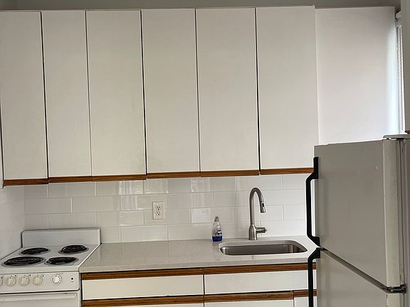 The apartment has hardwood floors throughout. The kitchen and bath are newly renovated. The bathroom has a shower and tub, with a new vanity and toilet. New floor to ceiling quartz tile. The kitchen has an electric stove, refrigerator, brand new quartz countertop.