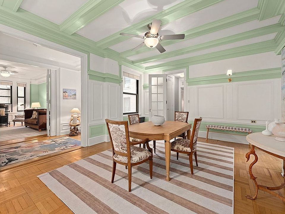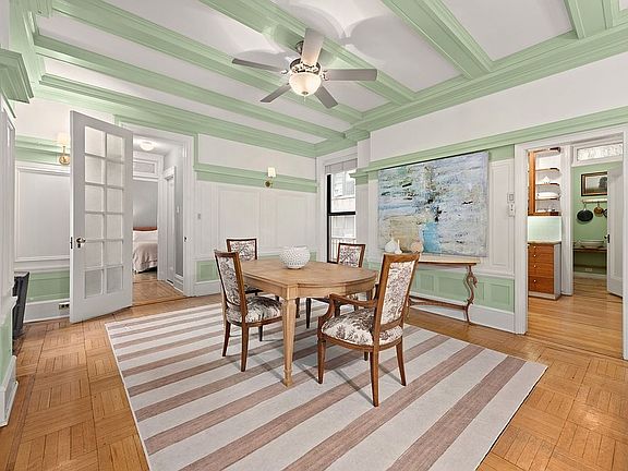 This classic six Riverside Drive home, offering three flexible bedrooms, has been meticulously renovated . The graceful lines and generous proportions are accentuated by contemporary updates. The oak parquet floors with mahogany inlay and lofty 9.5-foot ceilings provide a sophisticated backdrop.