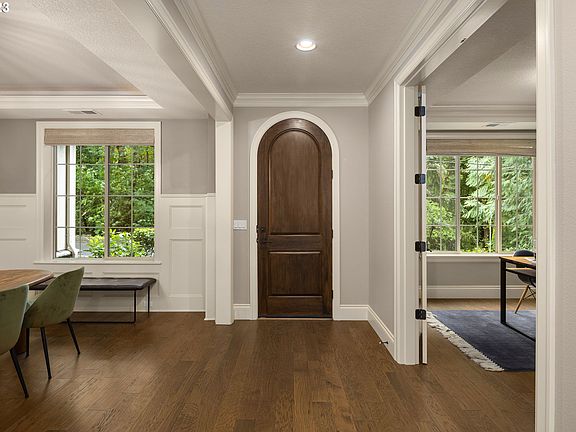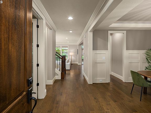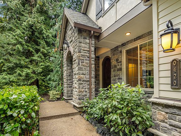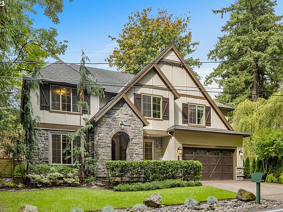 Welcome to this absolutely gorgeous Tudor-style nestled in the pastoral Collins View. A fantastic newer build with all of the modern comforts and amenities within a charming, classic frame. Don't let the yellow line fool you! This is a super quiet street. People walk right down the middle on their way to the trails or to Lewis and Clark. Enjoy an open floorplan with tons of flexibility throughout including a home office space/fifth bedroom on the lower floor. The spacious living area opens to a chef's kitchen complete with elegant granite countertops, stainless steel appliances (including a new dishwasher!), gas range, and large kitchen island which doubles as a perfect eating bar. Wonderful formal dining with nature views. 4 big bedrooms + bonus room upstairs! Gorgeous primary suite with cavernous walk-in closet and elegant standing tub. Custom blinds by Smith & Noble in the living spaces, office/5th bedroom, primary bedroom, and largest bedroom upstairs. Outside, enjoy privacy, beautifully manicured landscaping, spectacular outdoor living area perfect for entertaining, decorative pavers, and gas fire pit. This is a fantastic neighborhood near the River View Natural Area with miles of walking trails right across the street + Willamette River, Lewis and Clark College, Tryon Creek/Forest Highlands, and more! Be in Downtown or Lake Oswego in minutes! Schools, New Seasons, restaurants/cafes, and shopping all just a short ride away. This is a wonderful opportunity to reside in one of Portland's most highly sought-after areas in a wonderful location. Don't miss it!