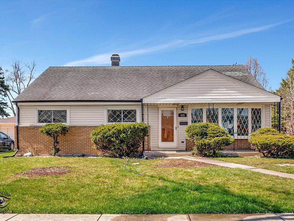 Multiple offers received. Asking for highest and best by June 11th at 6:00. Sunlight abounds in this freshly painted, three bedroom, two full bath ranch! Enter into the formal living room with bay window and hardwood floors and continue the flow into the kitchen that has ample counter space, a breakfast bar, pantry and stainless steel appliances. The kitchen opens up to the spacious and bright dining and family rooms featuring new luxury vinyl plank flooring and a gas fireplace for those chilly evenings. Brand new patio door leads out to the patio and fully fenced yard. All bedrooms have hardwood floors. Full bath with subway tile and new vanity. Large basement features recreation room with dry bar with room to partition off to create different fun areas. Extremely clean laundry room with brand new washer and dryer. Detached two and a half car garage. Close to restaurants, shopping and expressways. In great condition, but being sold AS IS.