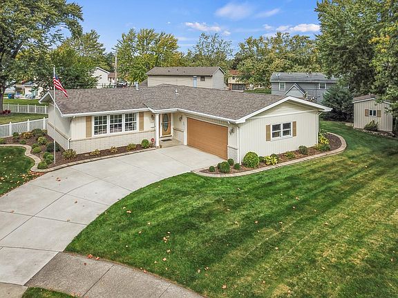 Mid Century custom built home. Care has been taken from day one on this ONE OWNER HOME. Continually updated through the years. Come enjoy this 3-bedroom, 2 1/2 bath ranch with FINISHED BASEMENT. NEWER windows, roof, central air, driveway. Hardscape and professional landscaping AROUND ENTIRE EXTERIOR OF HOME. Kitchen with white cabinets, corian counter tops and all appliances stay. L shaped living and dining rooms with lots of natural light from large windows. Finished basement with rec room with wood burning FIREPLACE. Oversized ceramic shower in lower level bathroom.. Large utility room with extra closets. Washer and dryer are included. Large 3 season SUNROOM for outdoor entertaining. 2 1/2 car garage with work bench plus a workshop in basement. Nice size storage shed. No HOA dues, tucked on a cul-de-sac in this great location close to town, schools and fairgrounds.