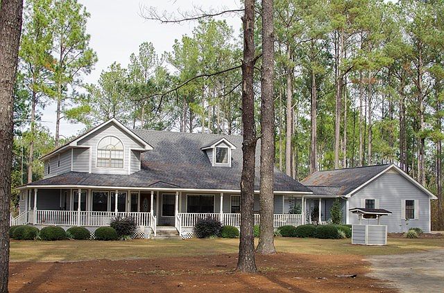 Country estate on private pond with 11+ acres of pine plantation. 2700sqft main house with 3 bdrm/3 bath and 3 car garage.. Master suite on bottom floor over looking pond and private access to back deck. The master suite has huge walk-in closet, jetted tub,full tile shower, double vanity and bedroom setting area. Large windows flood natural light into the vaulted ceilings of the kitchen, breakfast room and living room which gives the space the feel of a much larger area. Just off of the living room and at the bottom of the stairs is an area presently used as a study that could easily be used as an office or formal dinning room. The upstairs has two large bedrooms at each end and a full bath in between. The back bedroom has over sized windows looking out over the pond as well as double door access to a private balcony. This balcony has plenty of room for a small table and chairs. In addition to the oversized back deck, the front of the home has a deep porch across the entire front side of the home - the perfect southern outdoor amenity- that is perfect for a porch swing and rocking chairs. Call the Realtor to set up your time to see this classic southern country home before you see anything else!