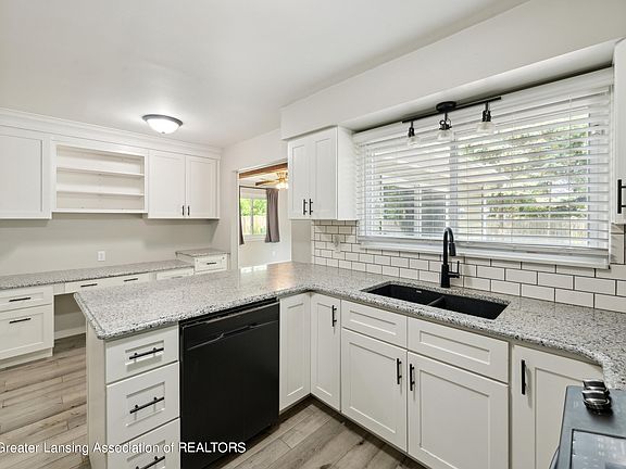 One of a kind offering in East Lansing's Tamarisk neighborhood. Here you can be close to the nature trail, popular Robert L Green Elementary, parks, restaurants, and campus in this totally updated three bedroom home. The current owners have gutted, refinished, and upgraded this stylish home and added backyard fun and relaxation too! The kitchen features new soft close white shaker cabinets, quartz countertops, pantry, desk and storage area, and GE Profile smart appliances in black slate. All original hardwood floors have been uncovered and refinished and new luxury vinyl can be found elsewhere throughout the home. You'll find new interior doors, bathroom vanities, light fixtures, fresh neutral paint, the list goes on...please see full list with details. A finished room in the basement could be used for a playroom, office, guest space, or workout area. In the backyard you'll find lots of space to run, imagine, and even zip line! If you prefer to relax, hop in the brand new low maintenance Hotspring saltwater therapeutic hot tub. A variety of trees, perennials, and a vegetable garden have been added as well. Storage will be no issue in the custom built oversized shed. There is something for everyone here. Come take a look and see if 420 Tarleton is perfect for you!