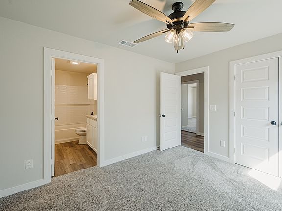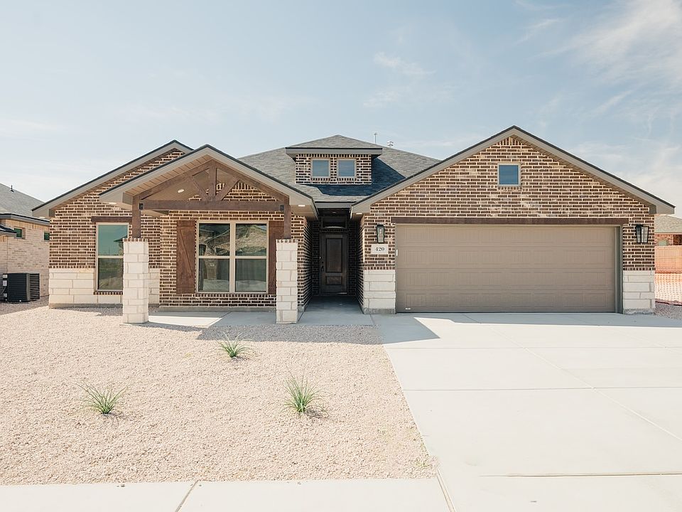 Experience livable luxury in our Faith floor plan, where style and comfort intertwine at the most affordable price! The Faith floor plan features: Brick exterior with cedar shutters and an extended front porch Luxury vinyl plank flooring in the home's common areas Open-concept kitchen, living, and dining area Granite or quartz countertops throughout Spacious kitchen island with bar seating Stainless steel appliances including a double-oven and built-in microwave cabinet Large enclosed pantry Oversized utility room with counter space and storage Brick fireplace Premium plumbing and lighting fixtures Secluded master suite with garden tub, walk-in shower, his and hers vanities, and oversized walk-in closet Private guest bedroom with en-suite bathroom Covered back patio