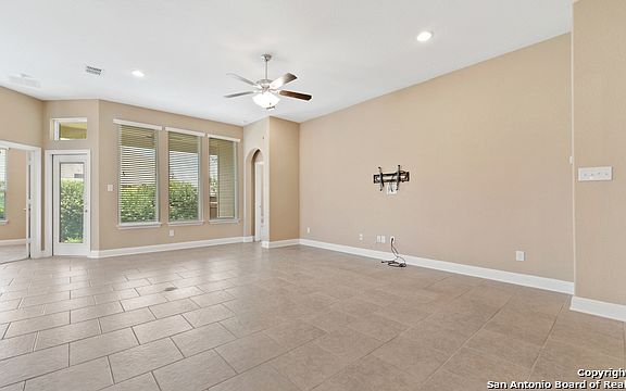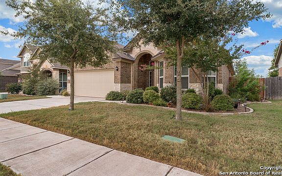 This Four Bedrooms or Three with a Study is just gorgeous Ceramic tile through Family, Kitchen/Brkft, Entry, Utility & Baths. Sprinkler system and covered patio, & garage door opener included as well as 42" cab & granite c/tops in kitchen. You will be located in the award winning school district of SCUCISD. You will be close to Randolph AFB, Fort Sam Houston, & Shopping